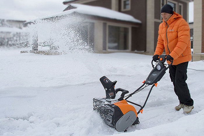 Электрические снегоуборщики - оснащены шнеками из ударопрочных и легких материалов. Удобные в транспортировке, обладающие малым весом и простые в эксплуатации машинки станут удачным решением для уборки тротуарной плитки и чистки дорожек. Из минусов стоит отметить что вам потребуется подключение к сети на протяжении всего процесса уборки территории.